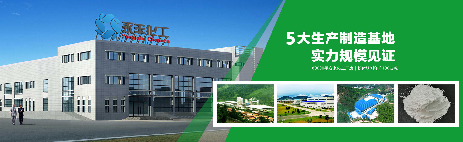 截止目前,永豐化工廣西,安徽,山西,河北及遼寧5大生產基地己全面落成投產,每個基地產能均可達10萬噸粉體材料。